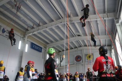 В Красной Поляне на базе Центра подготовки спасателей ЮРПСО МЧС России команды преодолели заключительную дистанцию чемпионата – командное силовое упражнение в подъеме по веревке длиной 50 метров
