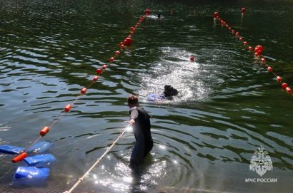На чемпионате МЧС России по многоборью спасателей команды преодолели водную дистанцию