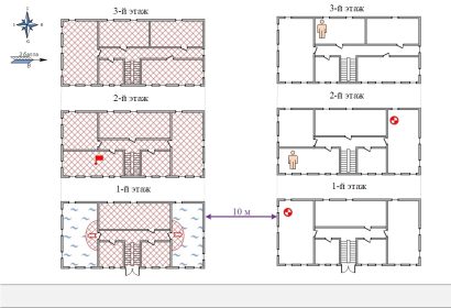 Полный охват огнем объекта пожара и возможность распространения пожара за его пределы - применение сил и средств на защиту соседних объектов